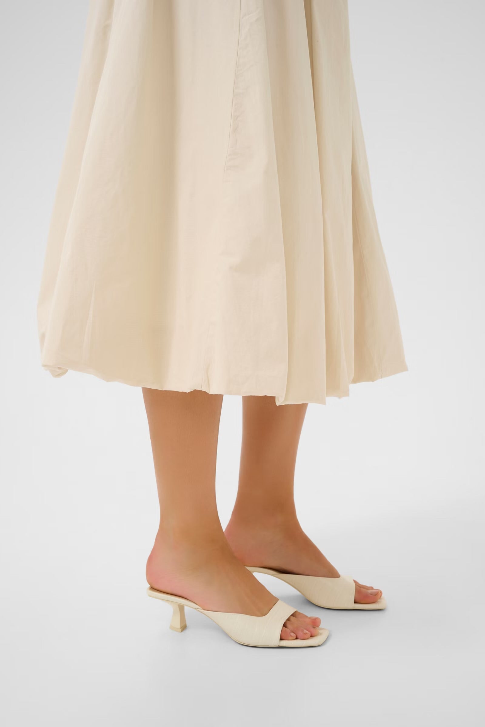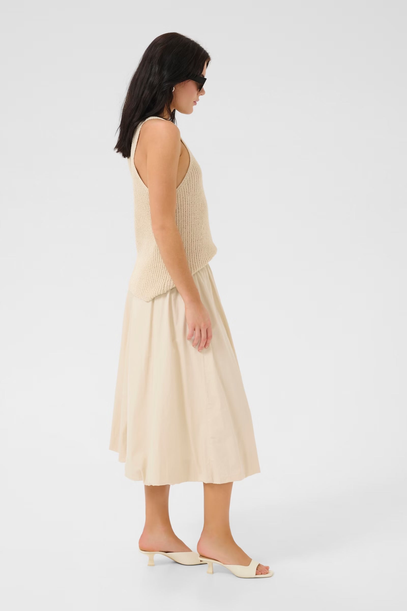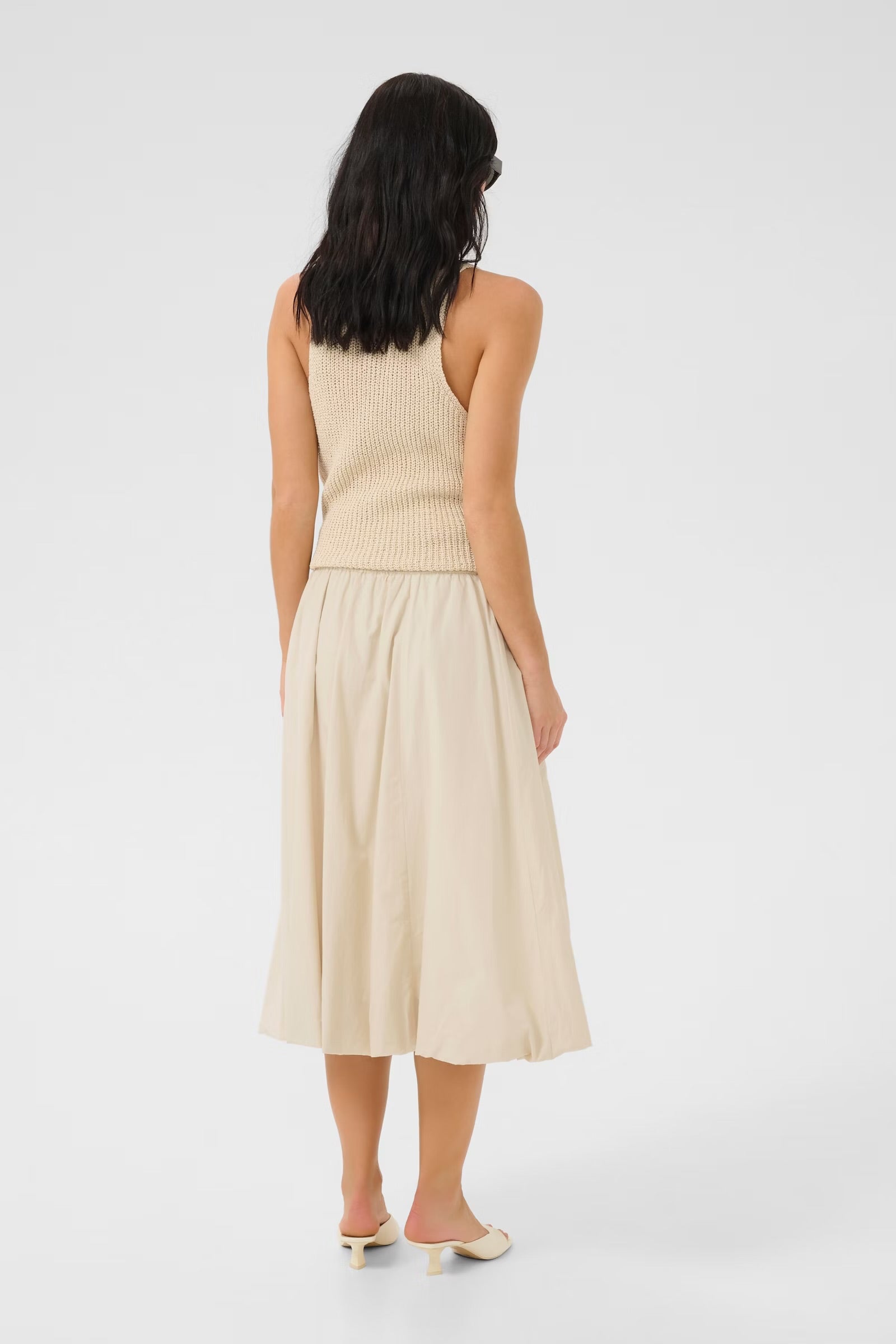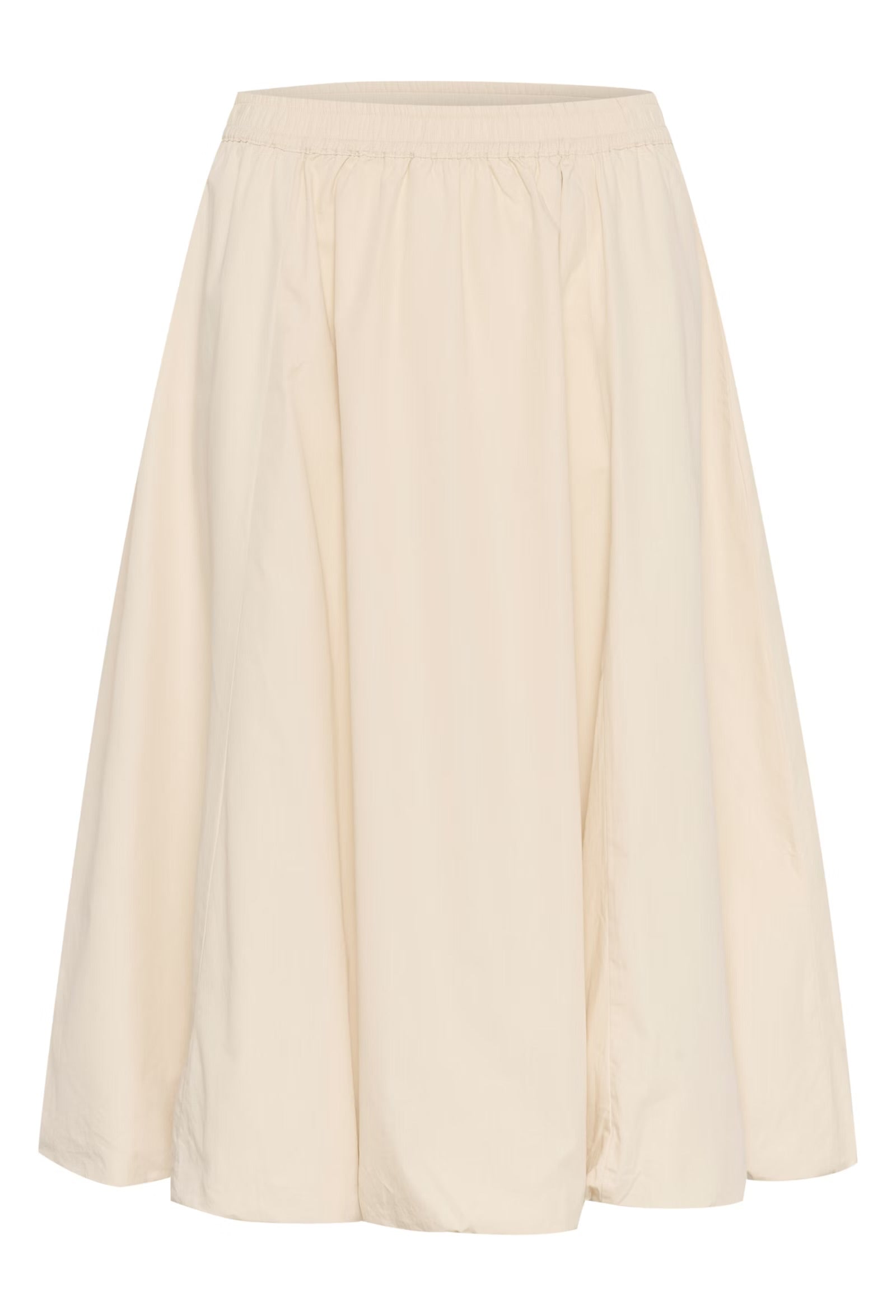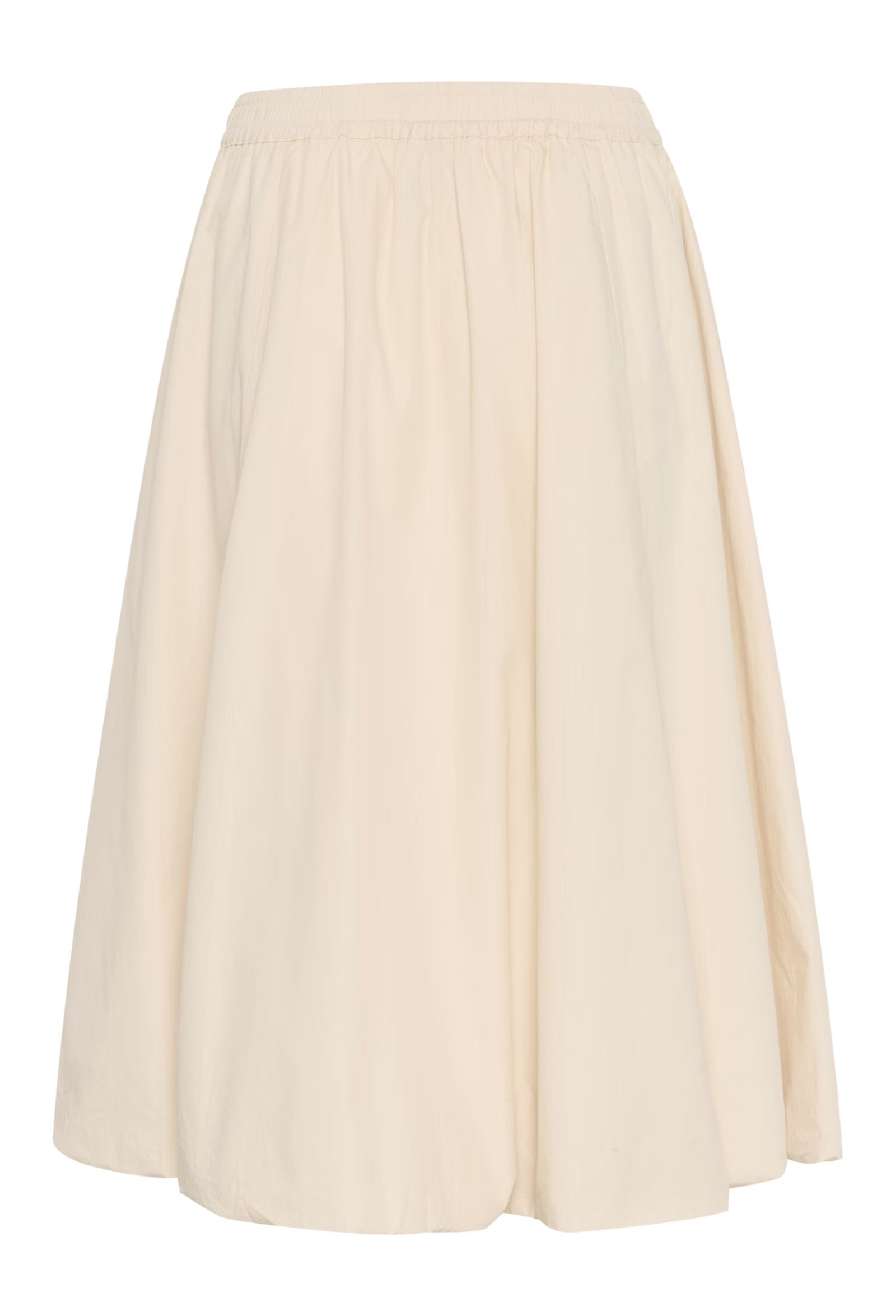 Puuvillapopliinista valmistettu midimallinen hame, jossa pallohelma ja joustava vyötärönauha. Pallohelma tekee hameeseen ihanan kevyen tunnelman. Hame on kaksinkertaisesta kankaasta, joten toimii hyviin ympäri vuoden.